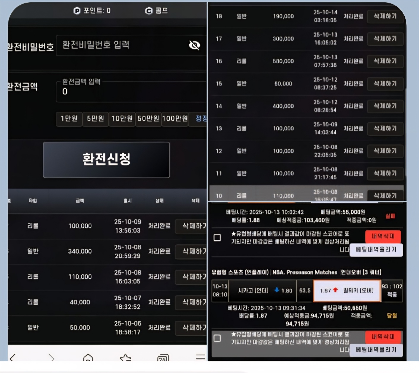 나인카지노 환버튼없음 실뱃치고 원금처리