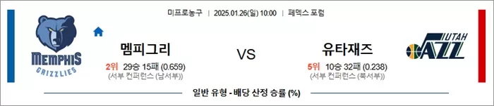 1월 26일 NBA 멤피그리 vs 유타재즈