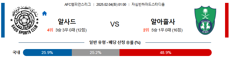 02일 04일 01:00 AFC 챔피언스리그 알사드 SC 알 아흘리 SC