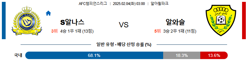 02일 04일 03:00 AFC 챔피언스리그 알 나스르(KSA) 알 와슬 FC