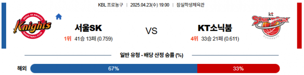 정규시즌 포함 상대전 7연승을 기록중인 서울SK가 된다. 외국인 선수와 토종 선수들의 시너지 효과에서 서울SK가 보다 좋은 모습을 보여줄 것이다.
