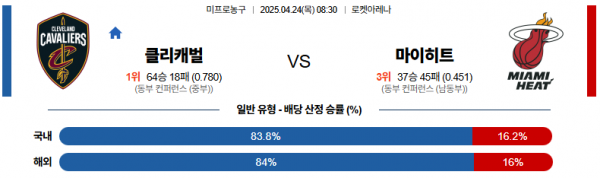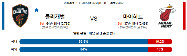 04월 24일 08:30 NBA 클리블랜드 캐벌리어스 vs 마이애미 히트
