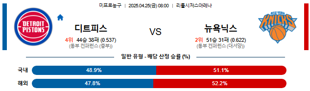 04월 25일 08:00 NBA 디트로이트 피스톤스 vs 뉴욕 닉스