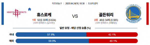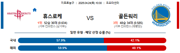 04월 24일 10:30 NBA 휴스턴 로켓츠 vs 골든스테이트 워리어스