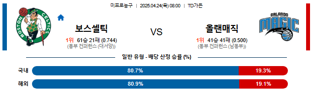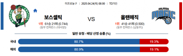 04월 24일 08:00 NBA 보스턴 셀틱스 vs 올랜도 매직