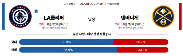 04월 25일 11:00 NBA LA 클리퍼스 vs 덴버 너겟츠
