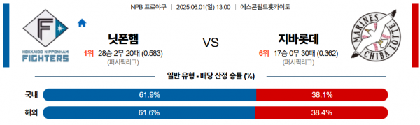 6월 1일 NPB 닛폰햄 vs 지바롯데