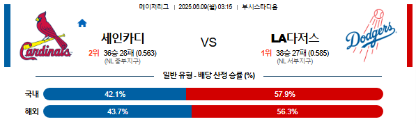 06월 09일 03:15 MLB 세인트루이스 vs LA다저스