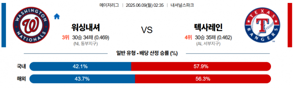 6월 9일 MLB 워싱내셔 vs 텍사레인