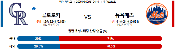 06월 09일 04:10 MLB 콜로라도 vs 뉴욕메츠