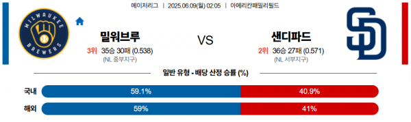 6월 9일 MLB 밀워브루 vs 샌디파드