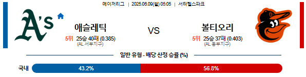 06월 09일 05:05 MLB 애슬레틱스 vs 볼티모어