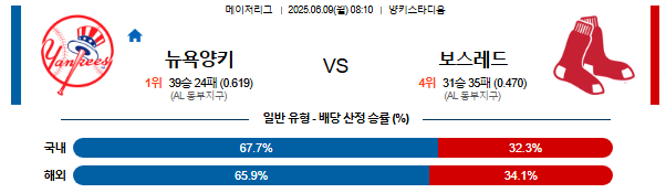 06월 09일 08:10 MLB 뉴욕양키스 vs 보스턴