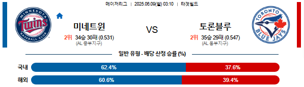 06월 09일 03:10 MLB 미네소타 vs 토론토