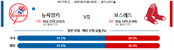 06월 07일 08:05 MLB 뉴욕양키스 vs 보스턴