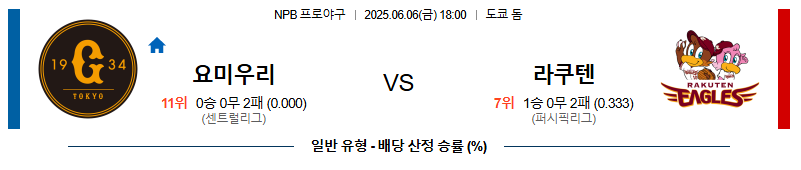 06월 06일 18:00 NPB 요미우리 vs 라쿠텐
