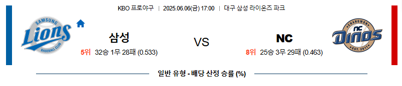 06월 06일 17:00 KBO 삼성 vs NC