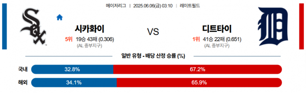 6월 6일 MLB 시카화이 vs 디트타이