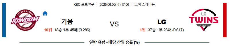 06월 06일 17:00 KBO 키움 vs LG