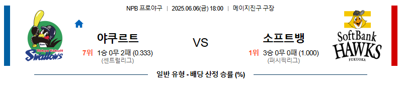 06월 06일 18:00 NPB 야쿠르트 vs 소프트뱅크