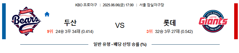06월 06일 17:00 KBO 두산 vs 롯데