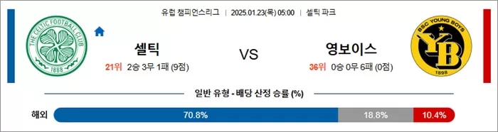 1월 23일 유럽 챔피언스리그 셀틱 vs 영보이스