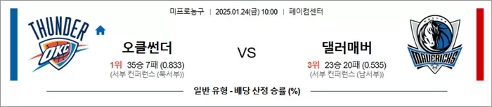 1월 24일 NBA 오클썬더 vs 댈러매버