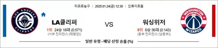 1월 24일 NBA LA클리퍼 vs 워싱위저