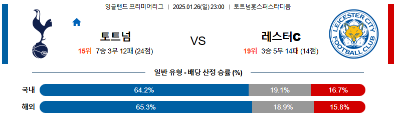 1월 26일 23:00 EPL 토트넘 홋스퍼 레스터