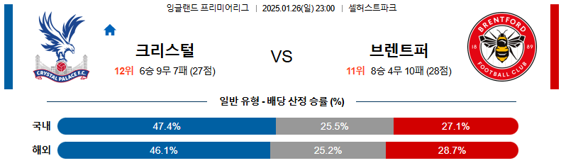 1월 26일 23:00 EPL 팰리스 브렌트포드
