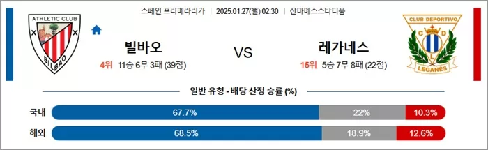 현재 성적: 빌바오는 리그에서 중위권에 위치하고 있으며, 홈 경기에서의 성적이 좋습니다.