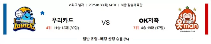 예상 스코어: 우리카드 1 - 3 OK 저축은행