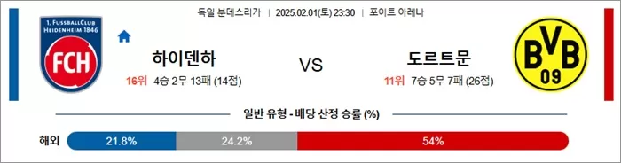 2월 01일 분데스리가 하이덴하 vs 도르트문