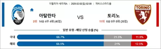 아탈란타의 공격력과 토리노의 수비를 고려할 때, 이번 경기에서도 2.5골 이상의 경기가 예상됩니다.
