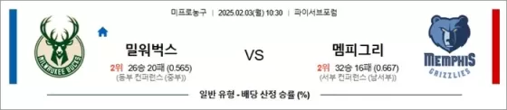 2월 03일 NBA 밀워벅스 vs 멤피그리