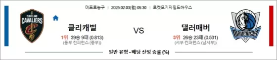 2월 03일 NBA 클리캐벌 vs 댈러매버