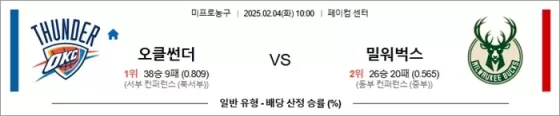 2025년 2월 4일 NBA 경기에서 오클라호마시티 썬더는 홈에서 밀워키 벅스를 상대합니다.