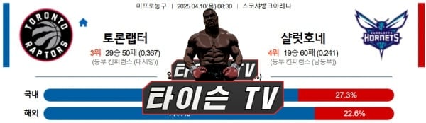 04월 10일 08:30 NBA 토론토 랩터스 샬럿 호네츠