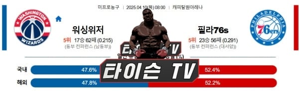 04월 10일 08:00 NBA 워싱턴 위자드 필라델피아 76ERS