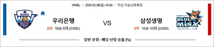 2월 09일 WKBL 우리은행 vs 삼성생명