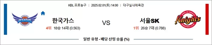 02일 01일 14:00 KBL 대구 한국가스공사 서울 SK