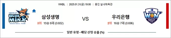 1월 31일 WKBL 삼성생명 vs 우리은행