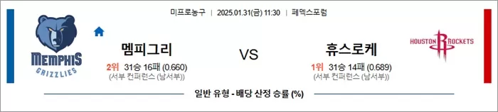 1월 31일 NBA 멤피그리 vs 휴스로케