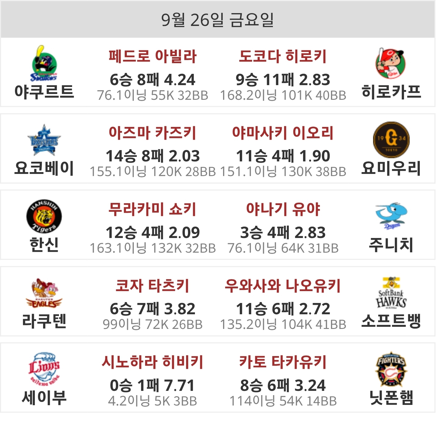 KBO ⚾️ NPB 선발 투수입니다 롯데는포기입니다