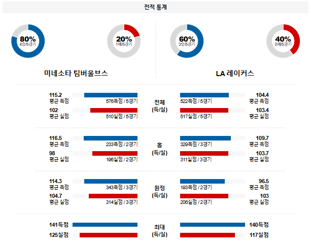 정규시즌 안방에서 강한 모습을 보여준 미네소타 베스트5가 페이스를 끌어 올리는 모습을 보여줄 것이다. 경기 템포를 끌어올릴 것으로 예상되는 만큼 오버 경기다.