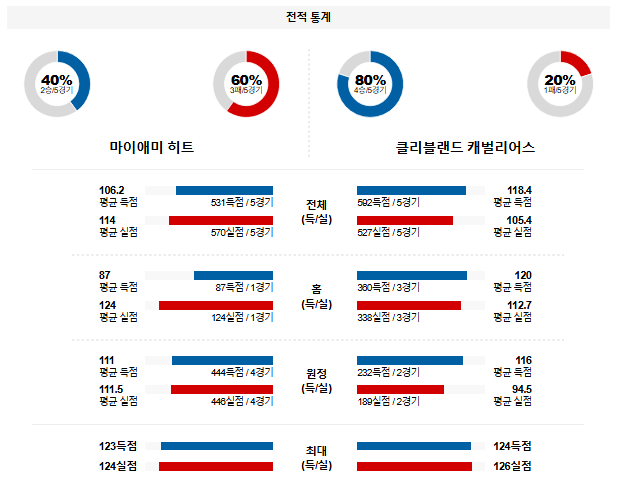 뛰어난 득점과 플레이메이킹 능력을 자랑하는 클리블랜드 백코트 조합의 위력이 나타날 것이다. 또한, 클리블랜드의 다득점이 예상되는 만큼 오버 경기다.