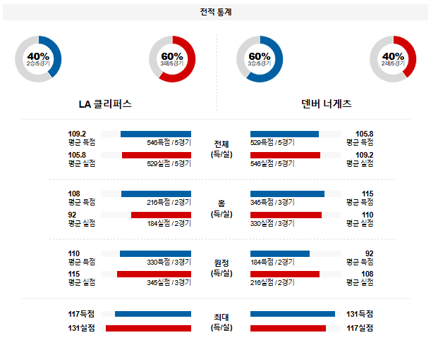 5월 2일 NBA LA클리퍼 vs 덴버너게