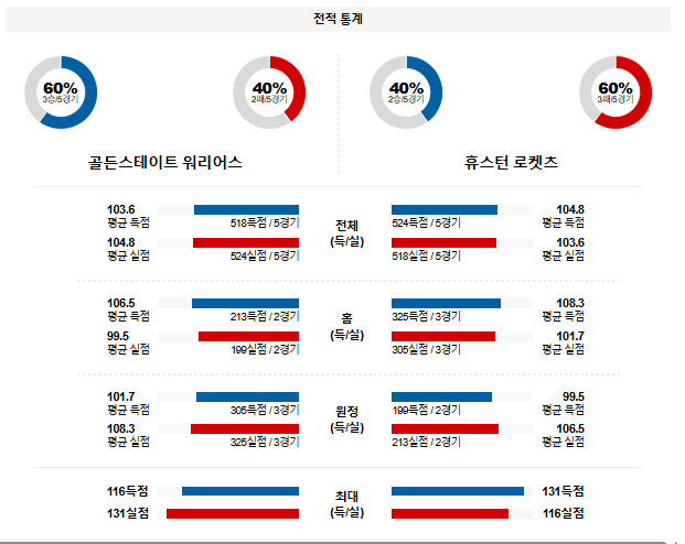 # 원정팀 : 휴스턴 로켓츠(52승30패, 서부 2위)