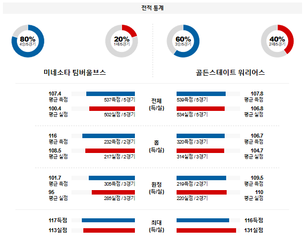휴스턴과 7차전까지 가는 혈투를 펼친 골든스테이트 선수들의 피로누적이 걱정이 되는 타이밍 이다. 미네소타가 제공권을 장악하는 가운데 승리를 가져갈 것이다.