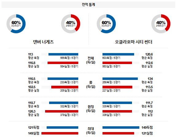 오클라호마가 강한 압박 수비와 베스트5 대결에서 우위를 기록할 것이다.